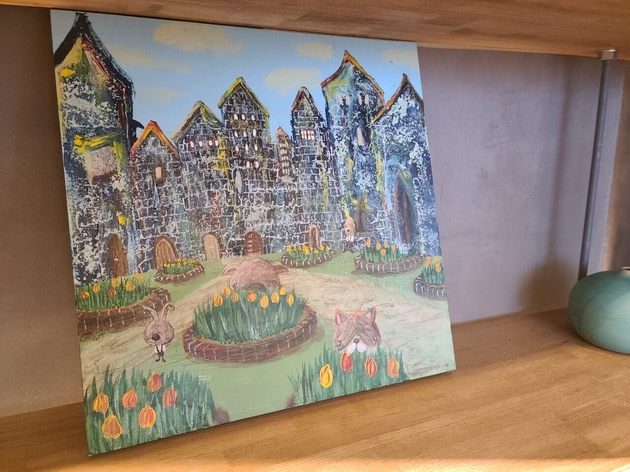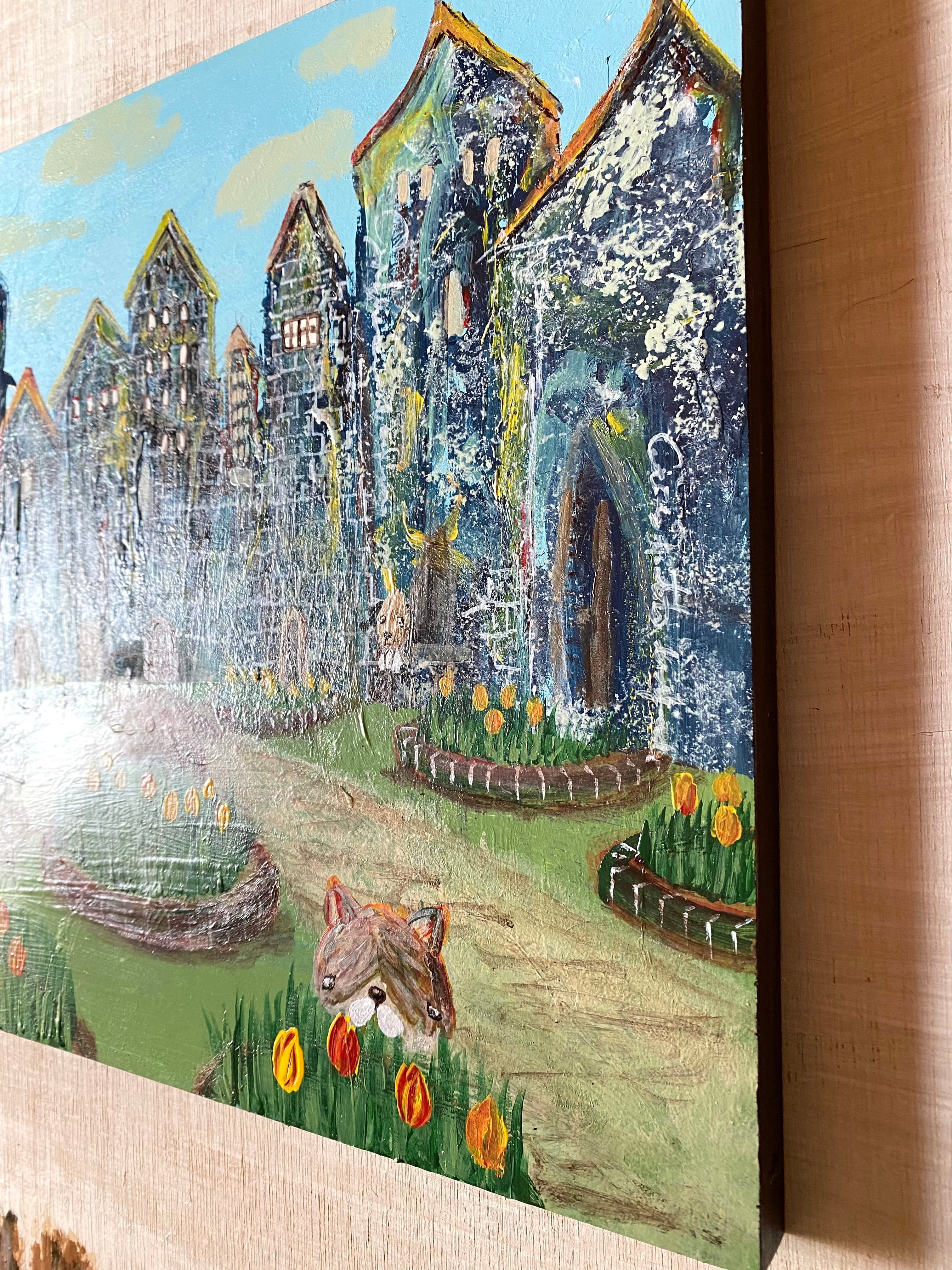 【 MoRk EXHIBITION 】木製パネル ペンキ画 (原画)300×300mm