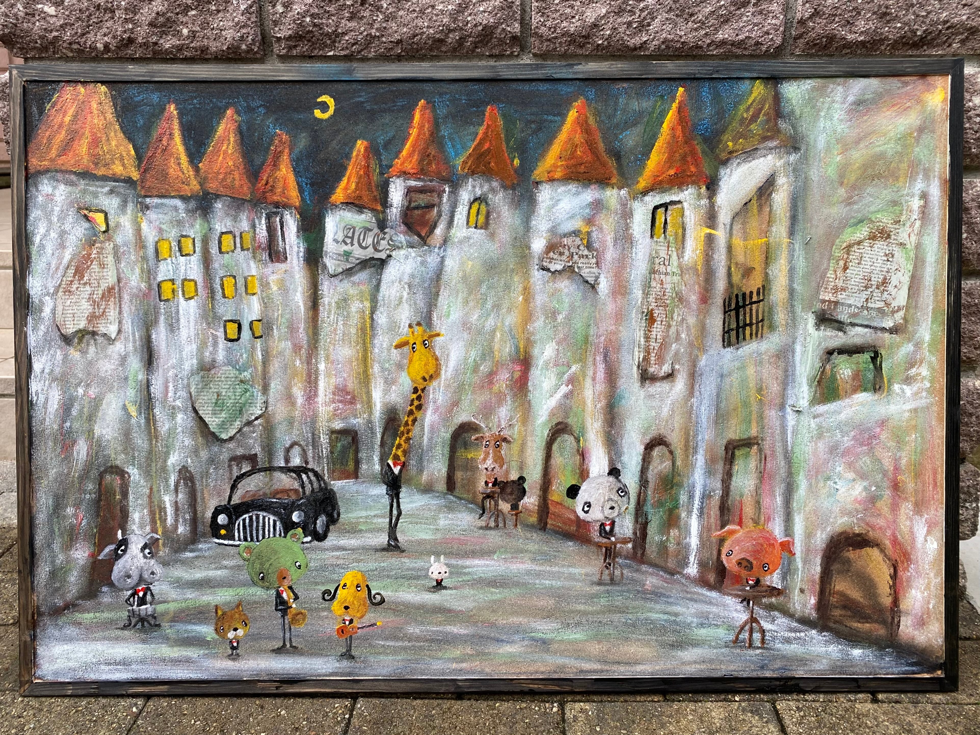 MoRk原画 【 路地裏のセレナーデ 】 600×900mm ペンキ画